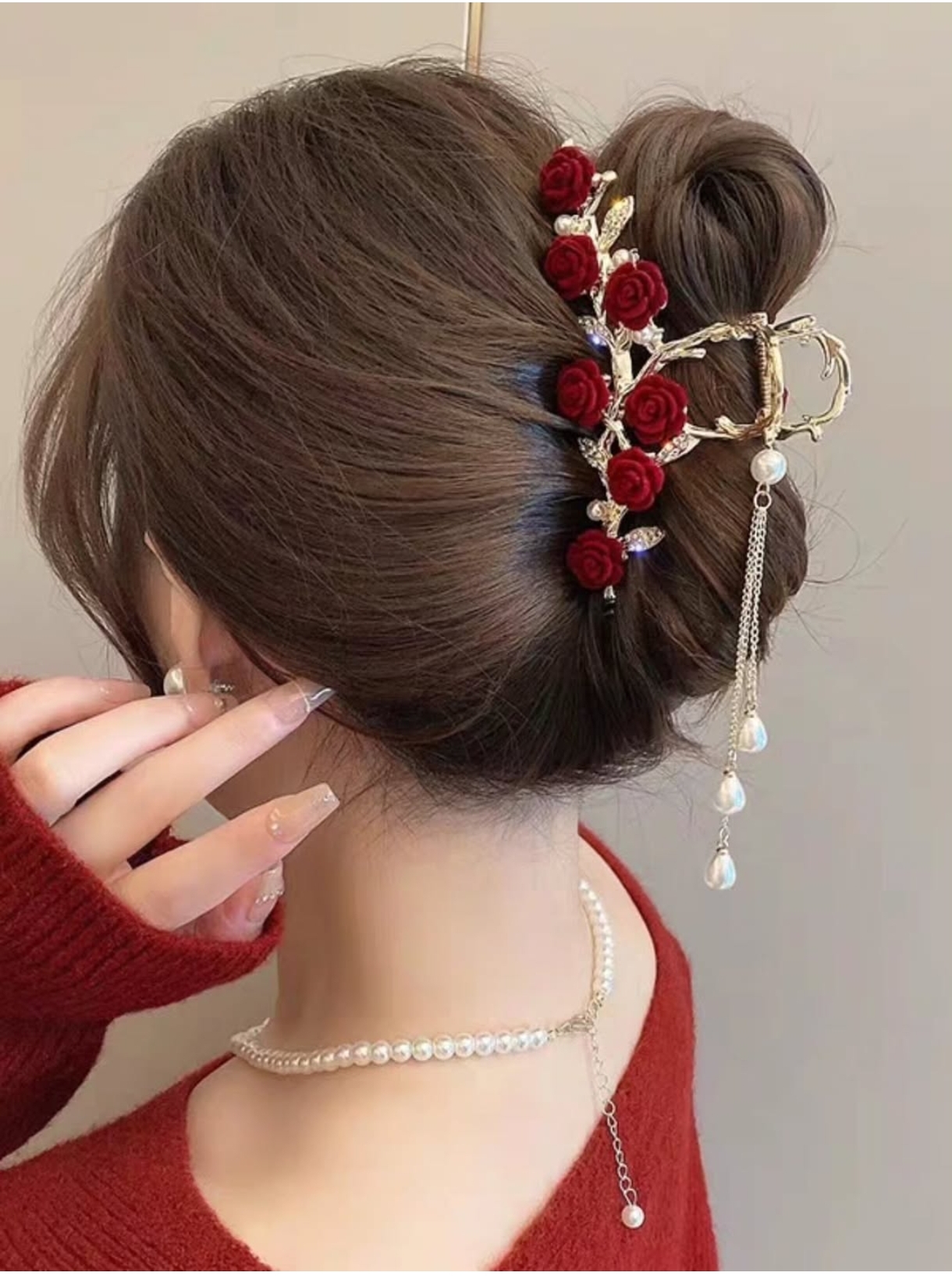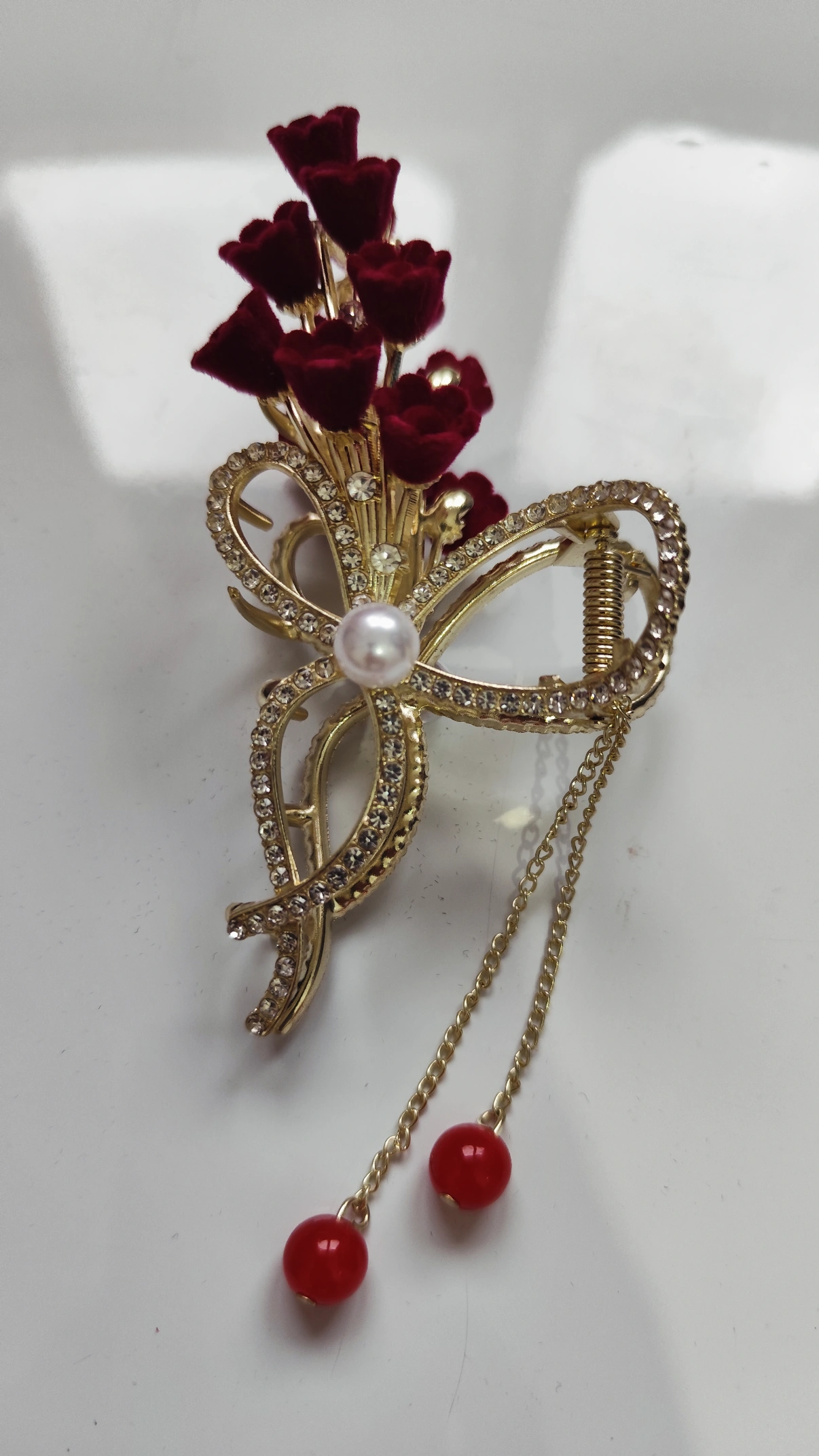 کلیپس فلزی دخترانه مجلسی طرح گل مخملی قرمز۱۵۳٬۰۰۰ تومان