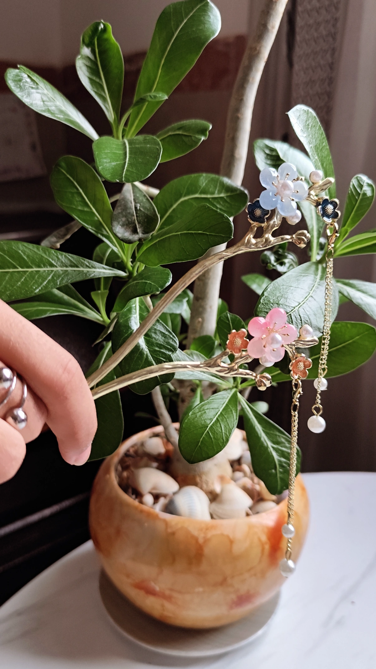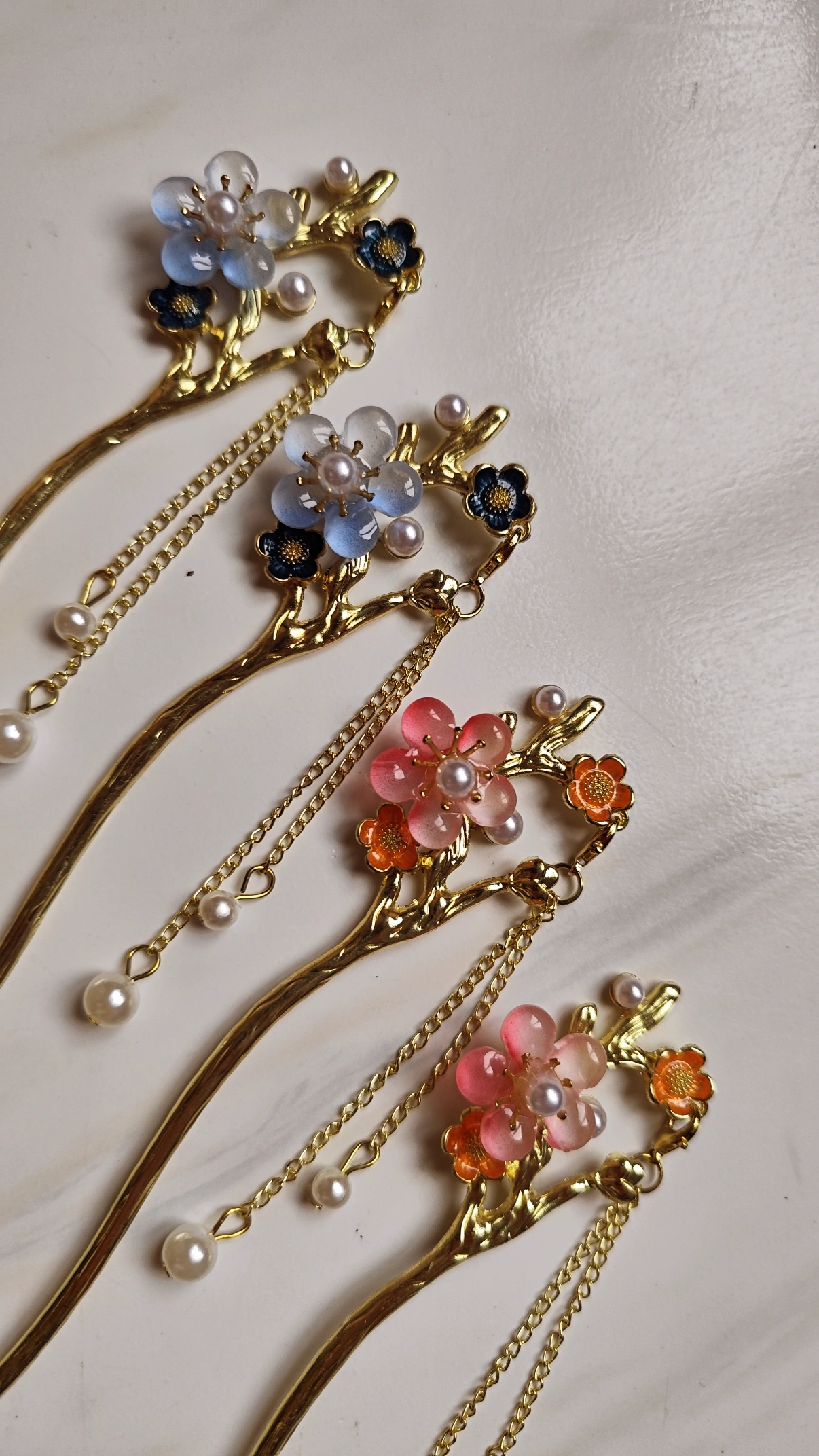 گلهای دستساز رزینی با درخشش مروارید، روی موها مثل اثر هنری مینشینند و نگاهها را بهسوی شما جذب میکنند.