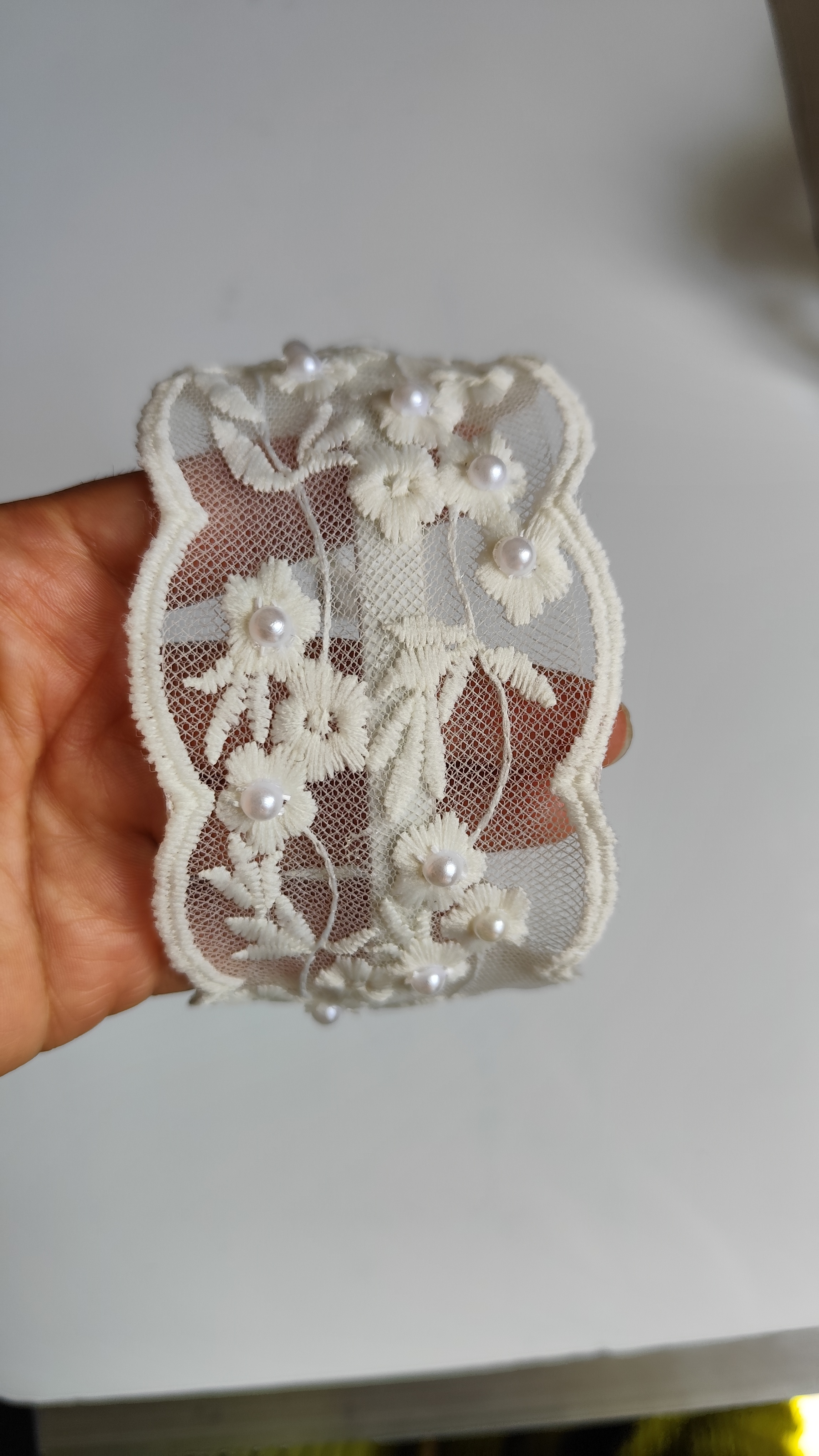 در دوخت آن از گیپور فانتزی و تزیینات مینیمال استفاده شده تا با هر نوع لباس (ساده یا رسمی) هماهنگ شود. بهراحتی میتوان آن را با شینیون ملایم، موهای باز یا دماسبی ترکیب کرد