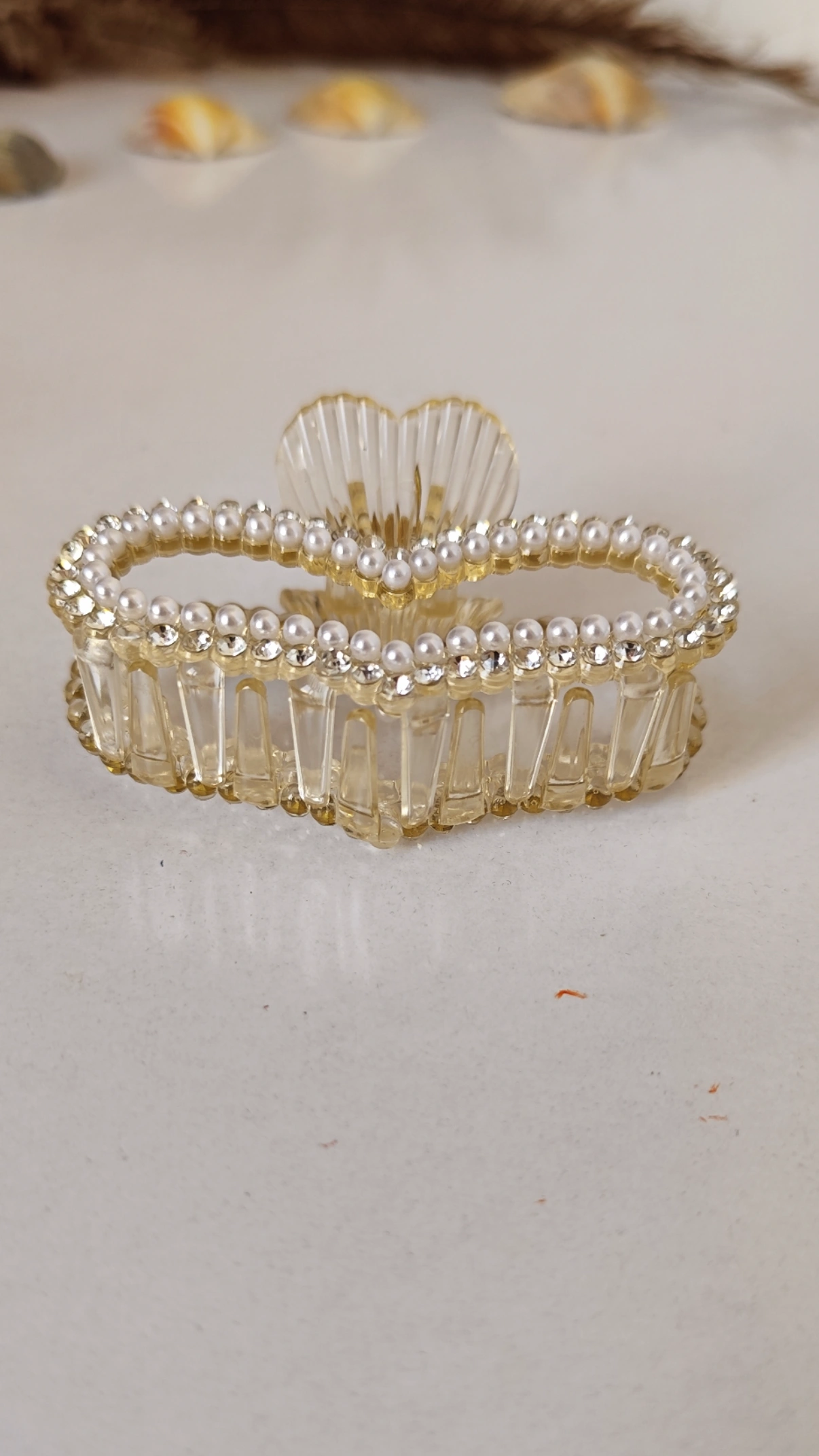 کلیپس طرح قلب جنس پلاستیک فشرده مرواریدی بسیار سبک وارداتی این کلیپس بسیار شیک و زیبا و سبک میباشد و استایل شما رو شیک تر جلوه میده کار بسیار باکیفیت و پرفروش هست