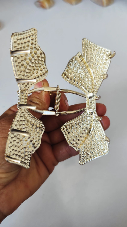 کلیپس مجلسی پاپیون محصولی وارداتی با ابعاد حدود ۱۳ سانتیمتر، آبکاری طلا و نگینکاری ظریف. در رنگ طلایی چشمنواز، یک محصول شیک و خاص برای درخشیدن شما در مجالس و مهمانیها ست.