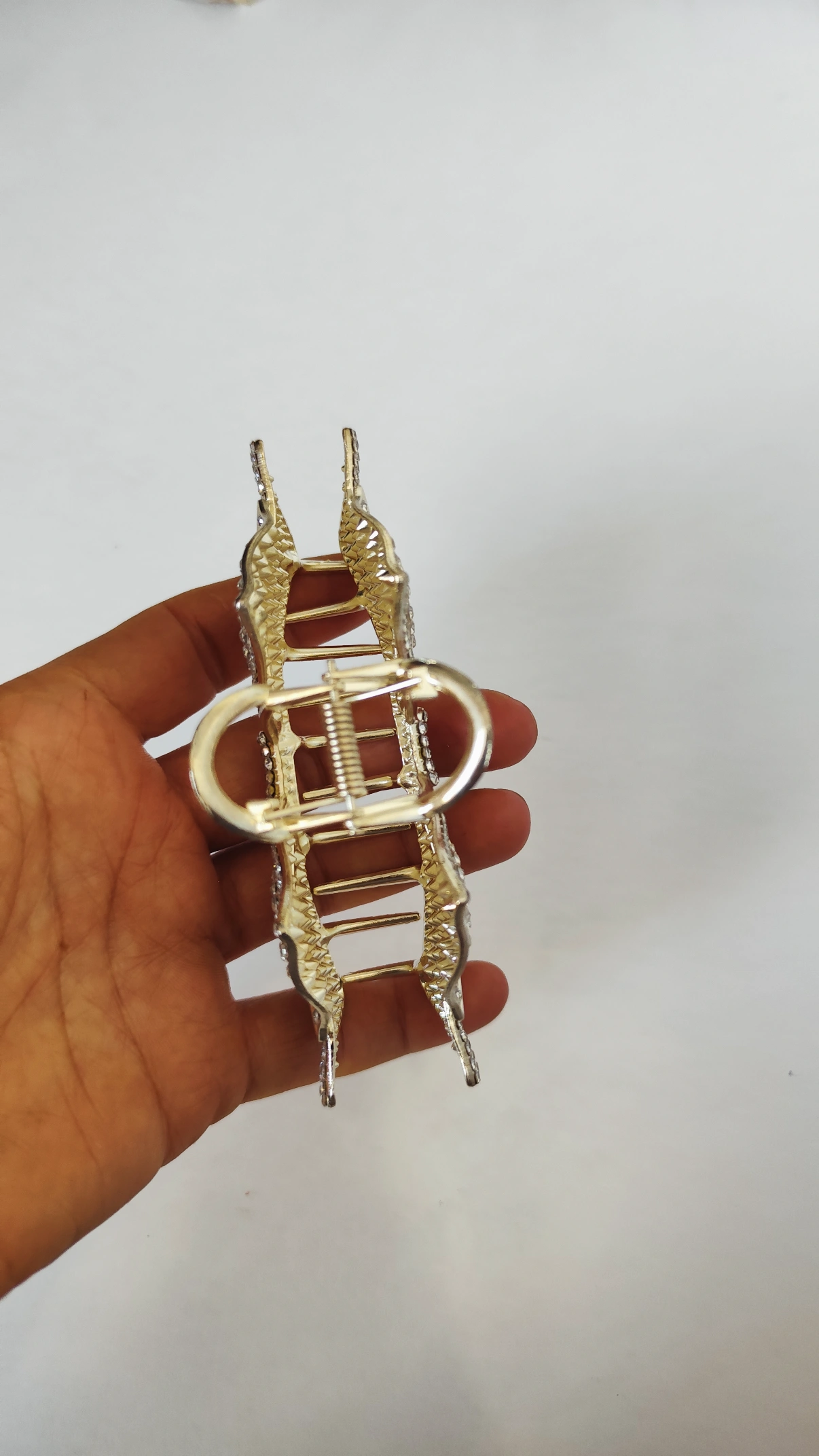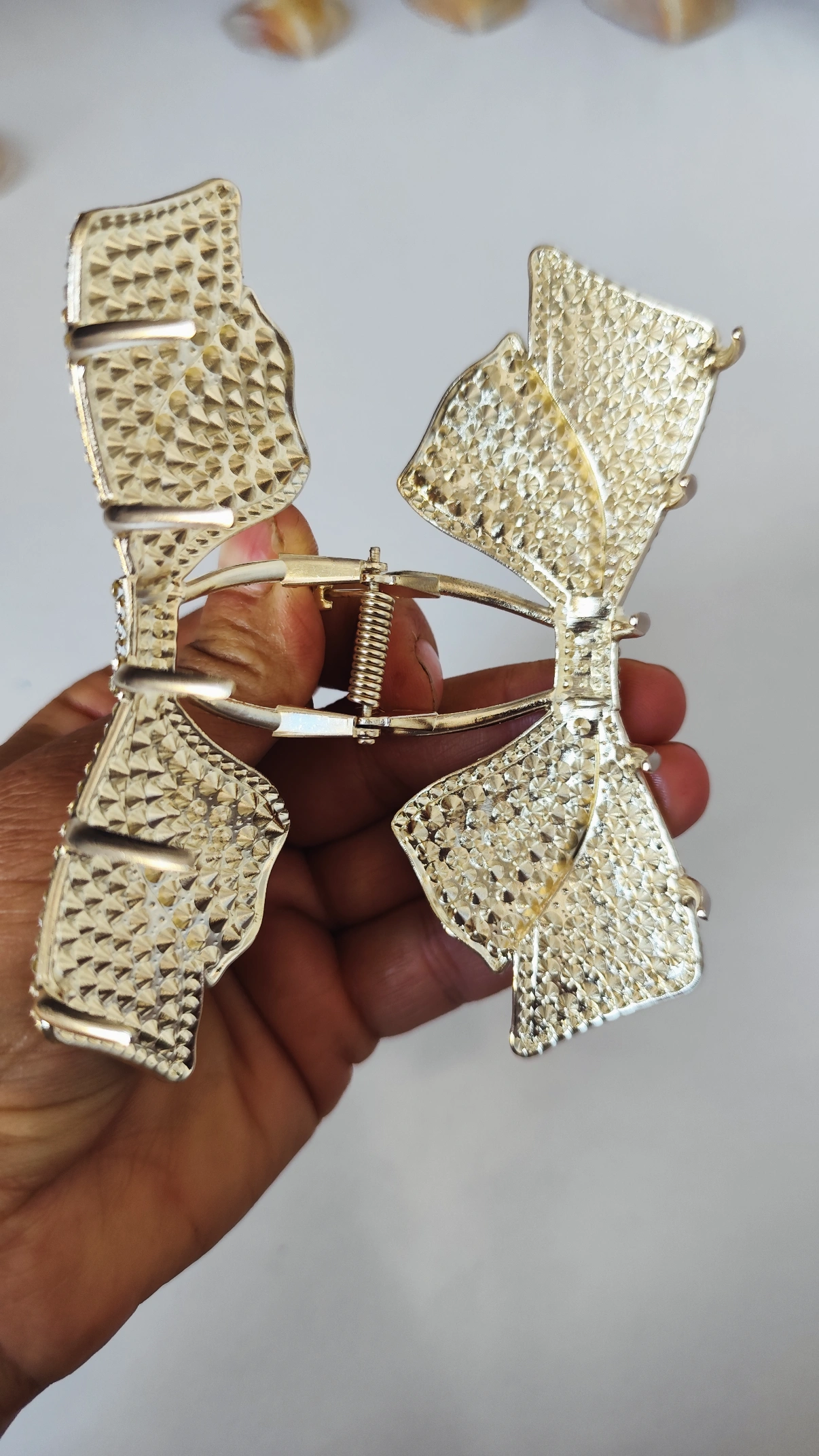 کلیپس مجلسی پاپیون محصولی وارداتی با ابعاد حدود ۱۳ سانتیمتر، آبکاری طلا و نگینکاری ظریف. در رنگ طلایی چشمنواز، یک محصول شیک و خاص برای درخشیدن شما در مجالس و مهمانیها ست.