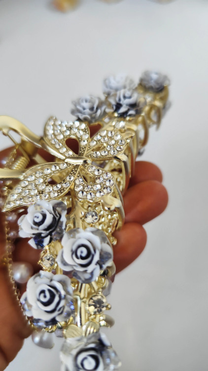 کلیپس مجلسی نگین کاری طرح گل و پروانه