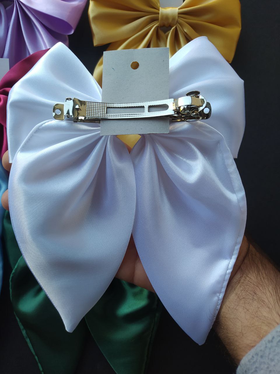 مشخصات 👇👇 🌺گیره فرانسوی پاپیون سایز بزرگ 🌺 یک گیره برای دورهمی ها و مجالس شما بسیار شیک و زیبا با کیفیت عالی پارچه ال ایکس ✅طول بلندی پاپیون حدود 22 سانتی ✅طول گیره فرانسوی 10 سانتی ✅طول هر طرف آویز 17سانتی